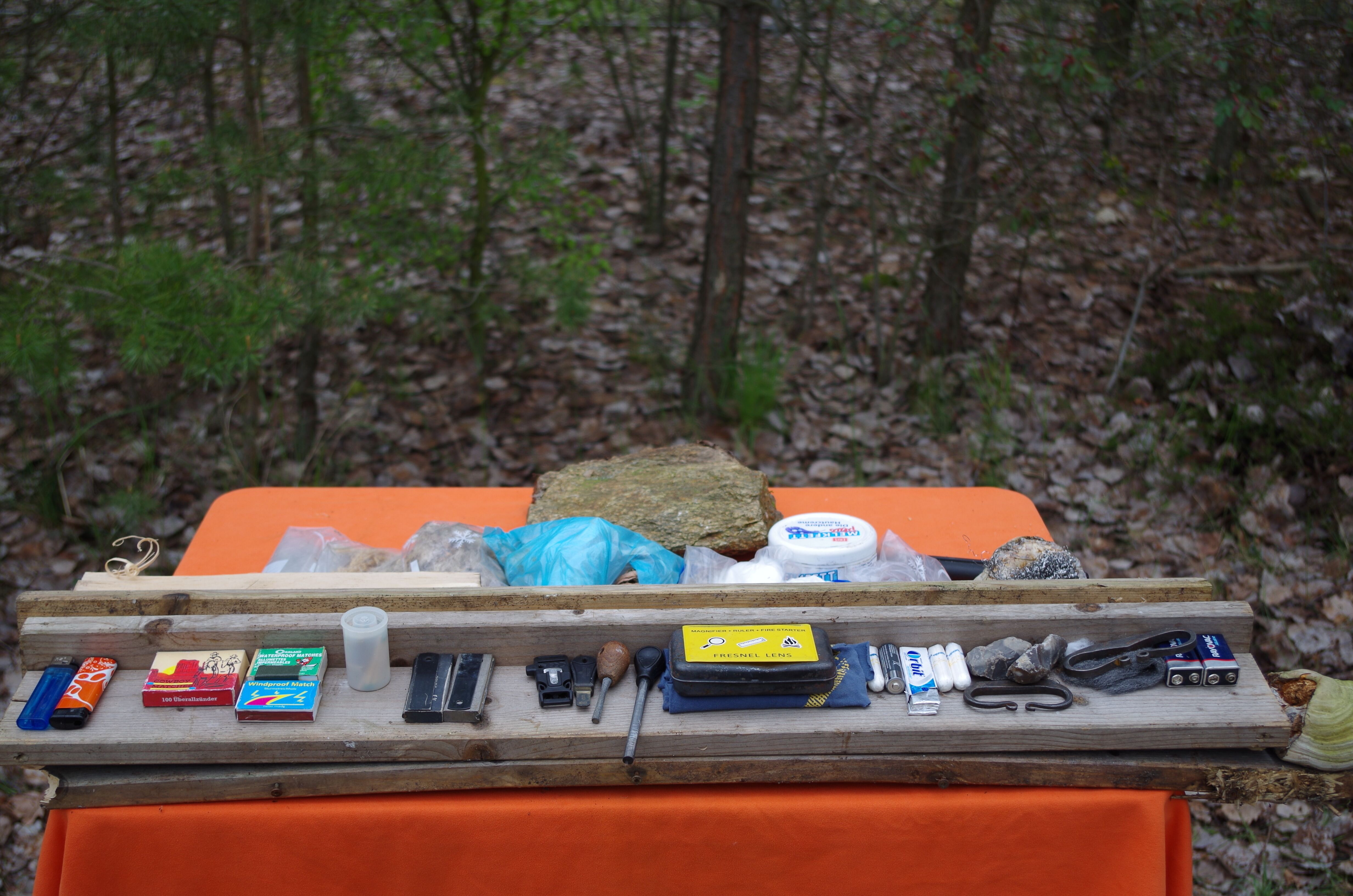Brandschutz, Holzarten, Feuererzeugung bei Kälte/Nässe/Wind, Zunderarten, Aufbau einer Zündkette, Feuerarten, Feuererzeugung mit künstlichen und natürlichen Hilfsmitteln